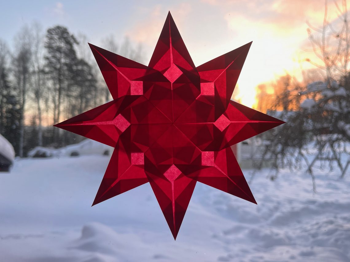 Vandaag ontvang je ster 2 van onze 12 sterrennachten. De hier bovenstaande ster mag je vandaag gaan maken. Hieronder kan je de video met tutorial bekijken. Het is een kerstrode vouwvorm. We snijden twee rode vellen van 22x22cm in vieren voor deze achtpuntige ster. Maaike en ik zijn heel benieuwd naar het eindresultaat. ✨